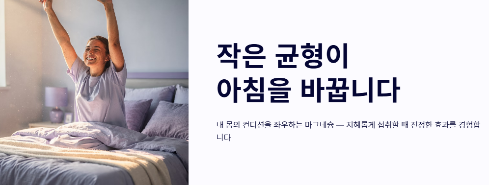 "자고 일어나도 개운하지 않으신가요?" 현대인의 필수 미네랄, 마그네슘이 필요한 신호눈밑이 파르르 떨리거나 밤마다 종아리에 쥐가 나서 잠을 설친 경험이 있으신가요? 혹은 특별한 이유 없이
