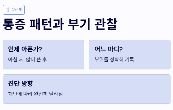 1단계: 통증 패턴과 부기 관찰하기