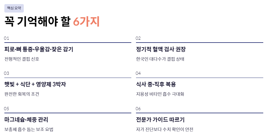 오늘 상세히 살펴본 비타민d 부족증상에 대한 핵심 정보를 정리합니다.