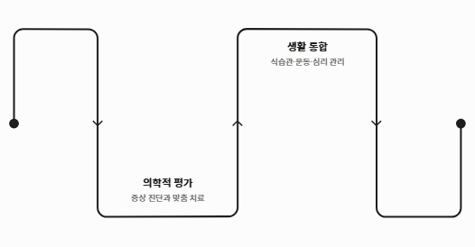 갱년기 증상 30가지 중 상당 부분은 생활 습관 교정만으로도 완화될 수 있습니다. 갱년기 증상 30가지가 생활을 위협하지 않도록 아래 단계를 실천하세요.