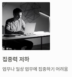 - 집중력 저하: 업무나 일상 업무에 집중하기 어려움.