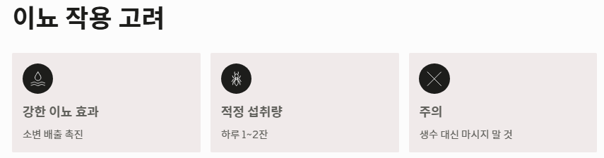 - 임산부 섭취 주의: 찬 성질과 강한 이뇨 작용 때문에 임산부는 전문가와 상의 후 섭취하는 것을 권장합니다.
