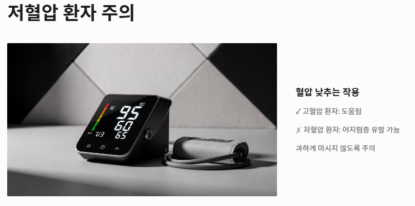 - 저혈압 환자 주의: 결명자는 혈압을 낮추는 작용이 있습니다. 고혈압 환자에게는 도움이 되지만, 평소 혈압이 낮은 분들이 과하게 마시면 어지럼증을 느낄 수 있습니다.