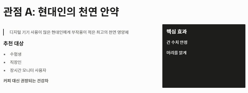 디지털 기기 사용이 많은 현대인에게 결명자는 부작용이 적은 최고의 천연 영양제라는 시각입니다. 간 수치를 안정시키고 머리를 맑게 해주기 때문에 수험생이나 직장인들에게 커피 대신 권장되는 건강차로 높게 평가합니다.