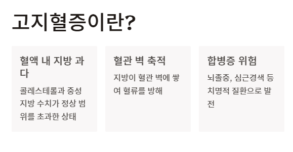 - 자각 증상 없음: 고지혈증 증상은 초기에는 거의 느껴지지 않으므로 검진만이 답입니다.