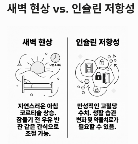 "아침에 눈을 뜨자마자 확인하는 혈당 수치, 기대와 달리 높게 찍힌 숫자를 보며 한숨 쉰 적이 있으신가요? 어제저녁에 식단 관리를 나름대로 잘했다고 생각했는데도 공복 혈당이 떨어지지 않는다면, 그것은 단순히 어제 먹은 음식의 문제가 아닐 수 있습니다. 우리 몸의 대사 시스템이 밤사이 어떤 일을 벌이고 있는지, 그 비밀을 풀지 못하면 아무리 굶어도 수치는 제자리걸음일 뿐입니다."
