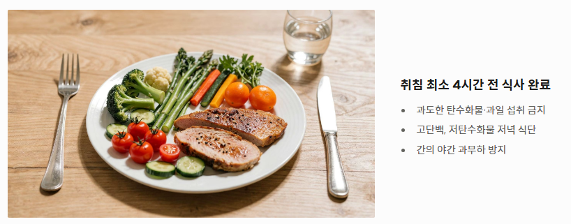 - 취침 4시간 전 식사를 마치고 정제 탄수화물을 줄이는 것이 공복혈당 낮추는 방법의 기본입니다.