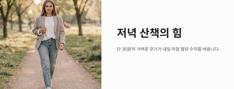 - 저녁 식후 산책과 꾸준한 근력 운동은 근본적인 공복혈당 낮추는 방법입니다.