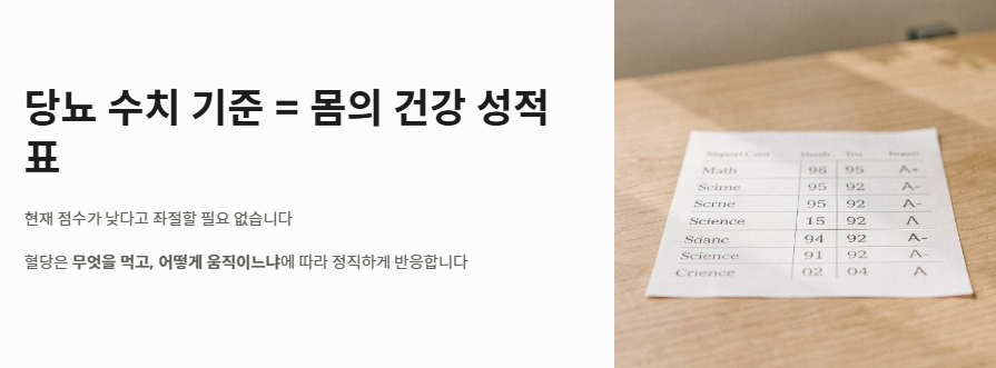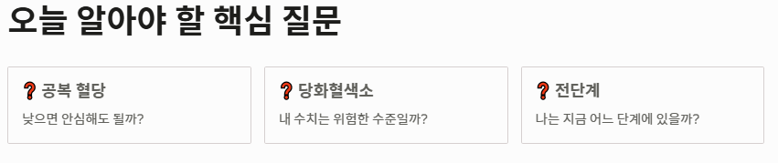 - 당화혈색소는 2~3개월의 평균치로, 장기적인 관리 상태를 보여주는 가장 신뢰할 만한 지표입니다.