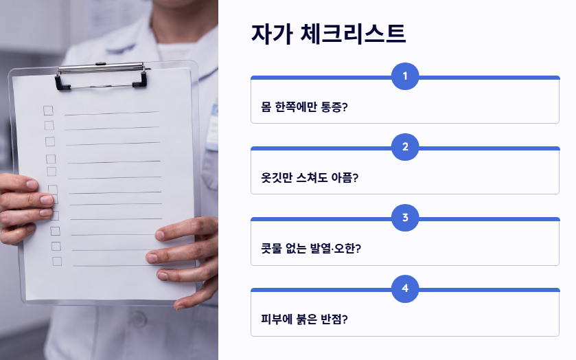 대상포진 초기증상을 발견했을 때 가장 중요한 것은 '속도'입니다. 신경 손상을 최소화하기 위한 단계별 대응법을 확인하세요.