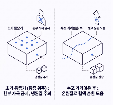 - 온찜질과 냉찜질 구분: 초기 통증기에는 환부를 자극하지 않는 것이 좋지만, 수포가 가라앉은 후의 통증에는 가벼운 온찜질이 혈액 순환을 도와 통증 완화에 기여할 수 있습니다.