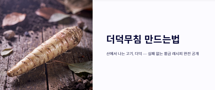 쌉싸름하면서도 향긋한 풍미가 일품인 더덕은 '산에서 나는 고기'라 불릴 만큼 영양이 풍부하고 맛이 뛰어납니다. 하지만 막상 집에서 더덕무침 만드는법에 도전해 보면 껍질을 까는 것부터 난관에 부딪히기 일쑤입니다. 기껏 껍질을 까서 무쳐 놓아도 더덕 특유의 아린 맛이 너무 강하거나, 식감이 너무 딱딱해 가족들의 젓가락이 가지 않았던 경험이 있으실 겁니다.