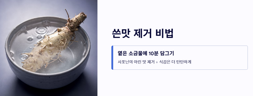 - 쓴맛(아린 맛) 제거: 더덕의 사포닌 성분은 몸에 좋지만 너무 쓰면 먹기 힘듭니다. 껍질 깐 더덕을 옅은 소금물에 10분 정도 담가두면 아린 맛은 빠지고 식감은 더 탄탄해집니다.