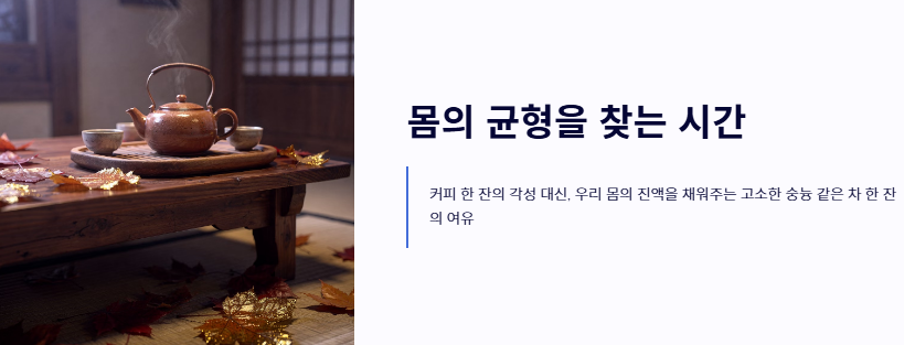 "커피 한 잔의 각성 대신, 우리 몸의 진액을 채워주는 고소한 숭늉 같은 차 한 잔의 여유를 알고 계시나요?"