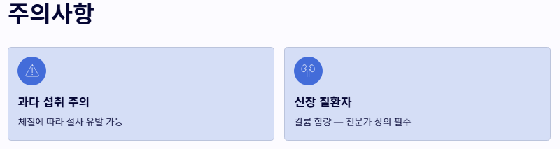 - 과다 섭취 주의: 이뇨 작용이 강하지는 않으나, 너무 많이 마실 경우 체질에 따라 설사를 유발할 수 있습니다.