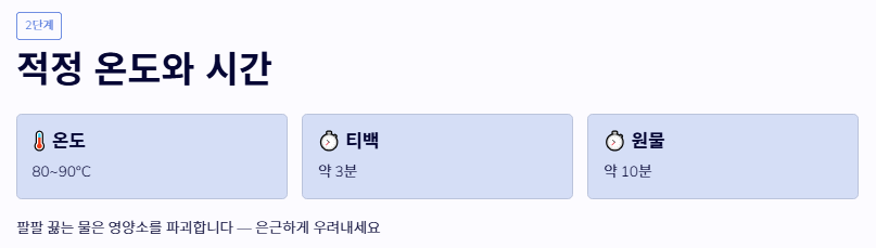 단순히 물에 우려 마시는 것보다, 둥글레차 효과를 제대로 체감하기 위한 단계별 실천법이 필요합니다.