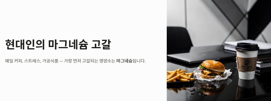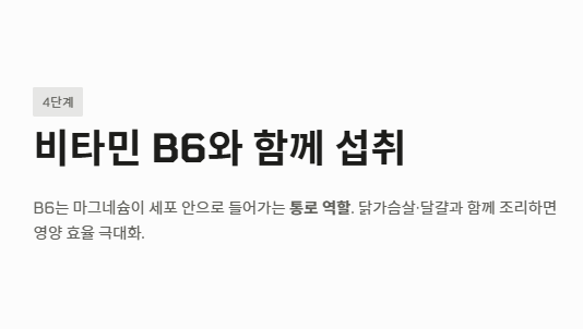 - 칼슘과의 비율(2:1)을 맞추고 비타민 B6를 곁들여 흡수율을 높입니다.
