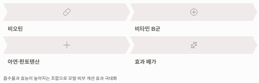 비오틴은 다른 비타민 B군과 함께 섭취할 때 흡수율과 효능이 높아집니다. 특히 단백질 대사를 돕는 아연이나 판토텐산(비타민 B5)과 함께 먹으면 모발과 피부 개선 효과가 배가됩니다.