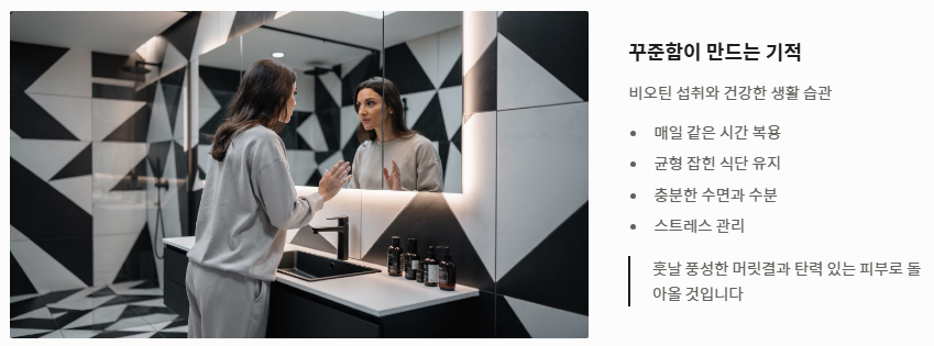 단순히 영양제를 먹는 것보다 체계적인 접근이 필요합니다. 비오틴 효능 10가지를 온전히 누리기 위한 단계를 확인하세요.