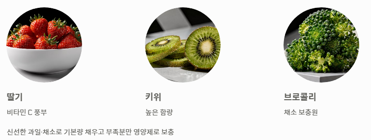 가장 좋은 보충원은 신선한 채소와 과일입니다. 딸기, 키위, 브로콜리 등을 통해 기본량을 채우고, 부족한 부분만 영양제로 보충하는 것이 비타민 C 하루 권장량 알아보기의 가장 이상적인 모델입니다.