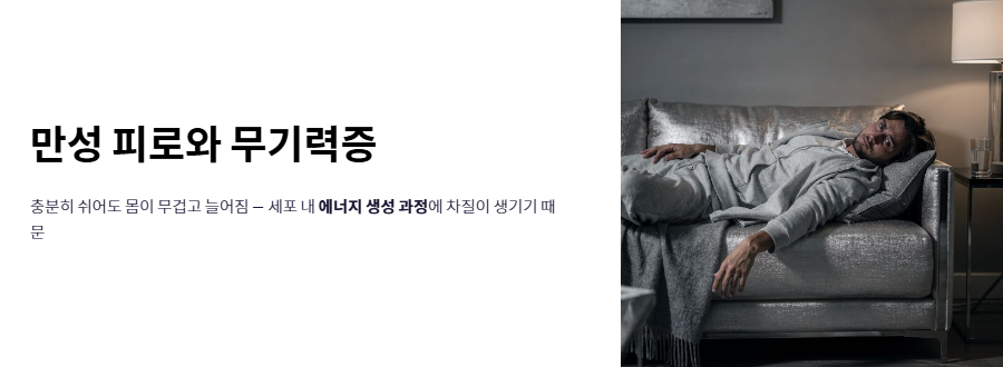 - 만성 피로와 무기력증: 충분히 휴식을 취했음에도 불구하고 몸이 무겁고 늘어지는 것은 대표적인 비타민d 부족증상입니다. 세포 내 에너지를 생성하는 과정에 차질이 생기기 때문입니다.