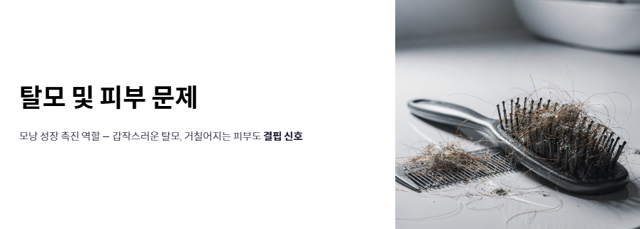 - 탈모 및 피부 문제: 모낭 성장을 촉진하는 역할을 하기에 갑자기 머리카락이 많이 빠지거나 피부가 거칠어지는 것 역시 비타민d 부족증상의 일종일 수 있습니다.
