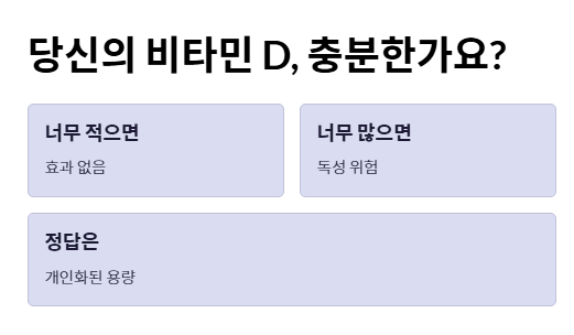 "당신이 매일 챙겨 먹는 그 비타민 D 한 알, 과연 내 몸의 결핍을 채우기에 충분한 양일까요, 아니면 오히려 간에 무리를 주는 과잉 섭취일까요?"