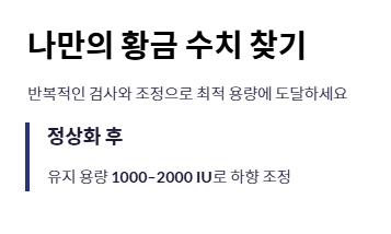 - 수치가 정상화된 이후에는 유지 용량으로 비타민d 하루 권장량을 조절하는 과정이 필수입니다.