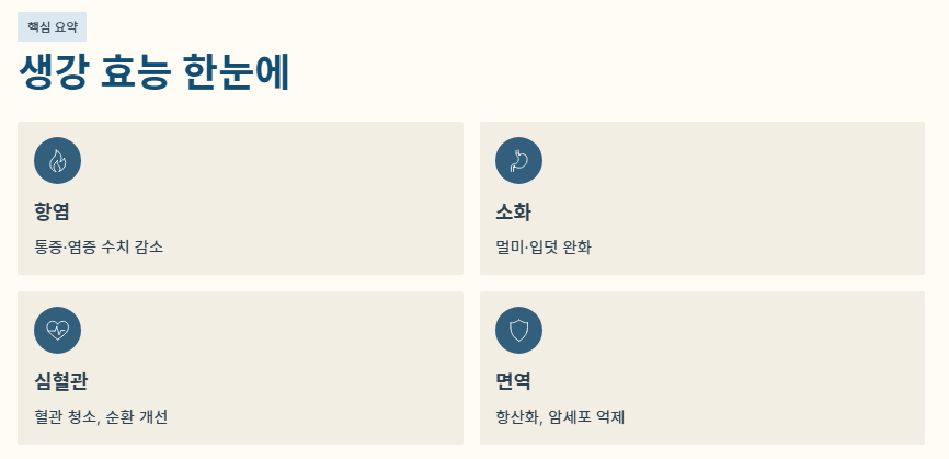 오늘 상세히 살펴본 생강 효능에 대한 핵심 내용을 정리합니다.