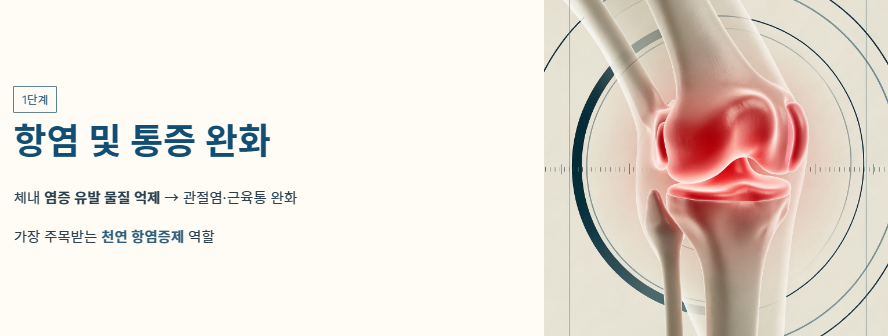 - 천연 항염증제로서 통증과 염증 수치를 낮추는 데 효과적입니다.