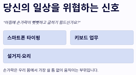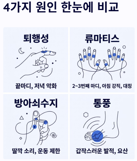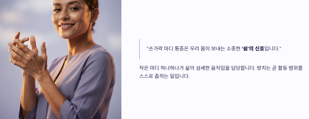 손가락 마디 통증 : "아침에 일어났을 때 손가락이 뻣뻣하고 굽히기 힘드신가요? 단순한 피로라고 생각했던 그 찌릿함이 당신의 일상을 위협하는 관절의 경고일 수 있습니다."
