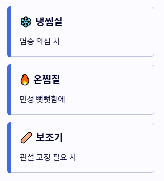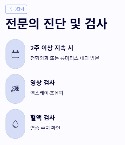 - 초기에는 충분한 휴식과 찜질이 중요하며, 증상 지속 시 반드시 전문가 검진이 필요합니다.