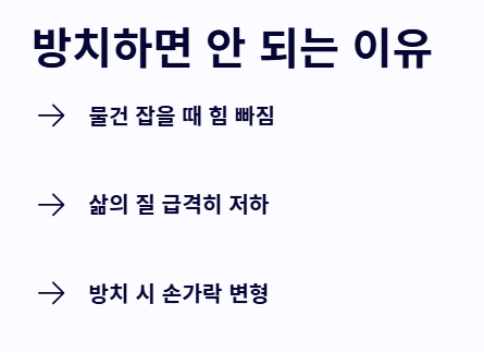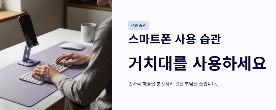 - 스마트폰 사용 시 거치대를 사용해 손가락의 하중을 분산시키는 습관이 필요합니다.