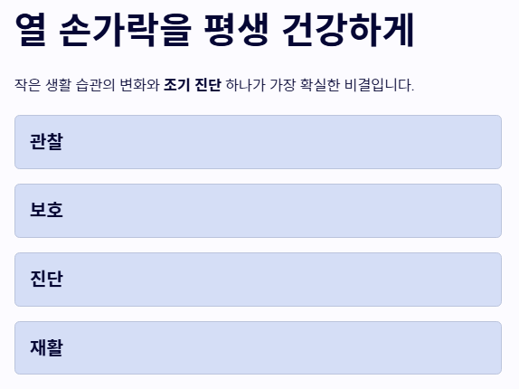 - 꾸준한 스트레칭과 손을 따뜻하게 유지하는 생활 습관이 관절 건강을 지킵니다.