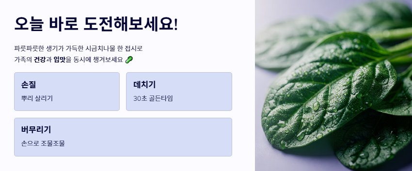 있습니다. 화려한 양념 없이도 제철 시금치가 주는 건강한 에너지는 우리 식탁을 풍성하게 만들어 줍니다. 오늘 알려드린 노하우를 활용해, 파릇파릇한 생기가 가득한 시금치나물 한 접시로 가족들의 건강과 입맛을 동시에 챙겨보시는 건 어떨까요?