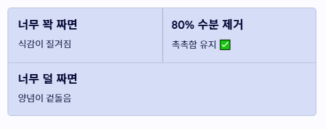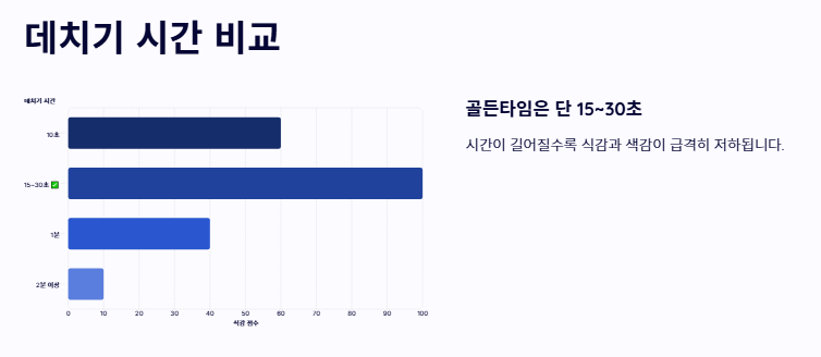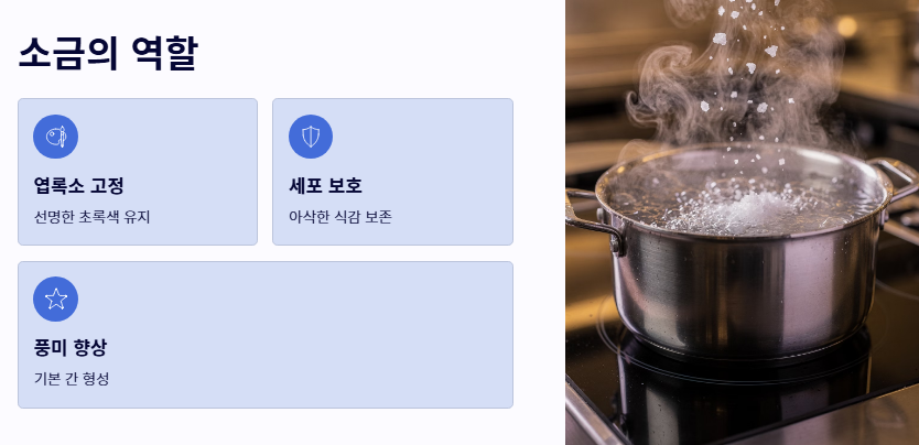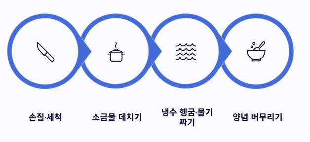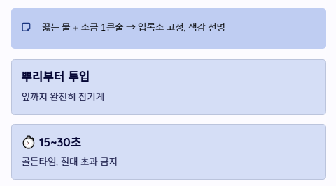 - 끓는 소금물에 30초 이내로 짧게 데쳐 아삭한 식감을 유지합니다.