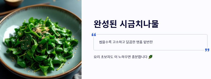 결론적으로 시금치나물 맛있게 무치는법은 짧은 데치기 시간과 적절한 수분 조절, 그리고 뿌리 채소의 단맛을 살리는 정성에 달려