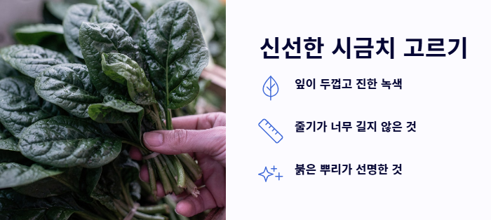 - 신선한 시금치 고르기: 잎이 두껍고 진한 녹색을 띠며, 줄기가 너무 길지 않은 것을 선택하는 것이 맛있는 시금치나물 맛있게 무치는법의 출발점입니다.
