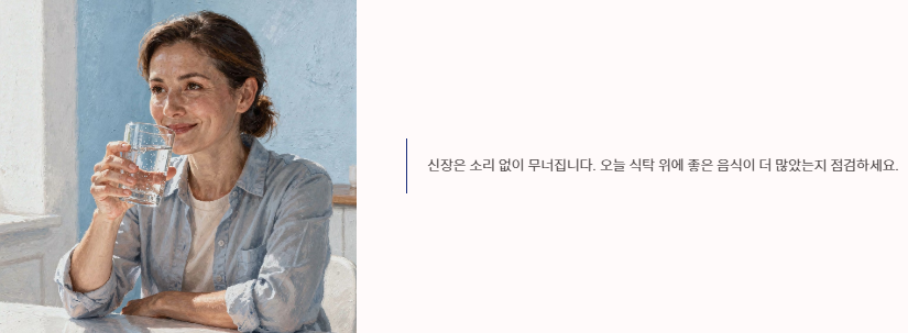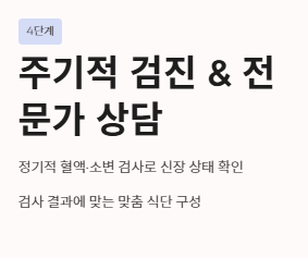 음식만으로 모든 것을 해결하려 하기보다, 정기적인 혈액 및 소변 검사를 통해 현재 내 신장의 성적표를 확인하고 그에 맞는 식단을 구성해야 합니다.