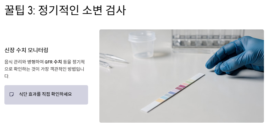 - 정기적인 소변 검사: 음식 관리와 병행하여 자신의 신장 수치를 모니터링하는 것이 신장에 좋은 음식의 효능을 확인하는 가장 객관적인 방법입니다.