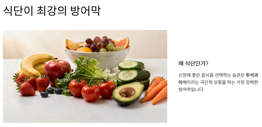 - 개인의 신장 수치(GFR 등)에 따라 신장에 좋은 음식이라도 섭취량과 조리법을 달리해야 합니다.