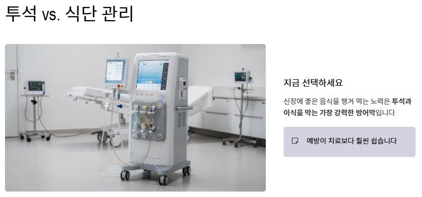 - 신장은 노폐물을 걸러주는 우리 몸의 정수기이며 식단 관리가 건강의 핵심입니다.