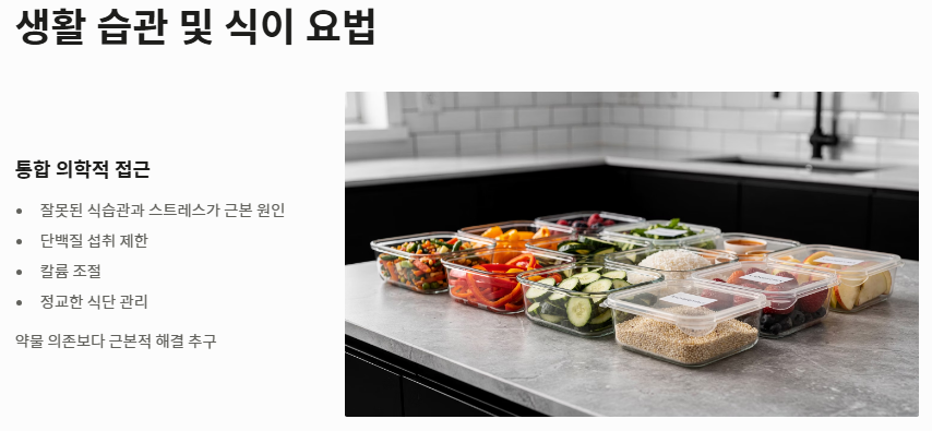 - 생활 습관 및 식이 요법 관점: 반면, 통합 의학적 측면에서는 신장이 안좋으면 나타나는 증상이 결국 잘못된 식습관과 스트레스에서 기인한다고 봅니다. 단순히 약에 의존하기보다 단백질 섭취 제한과 칼륨 조절 등 정교한 식단 관리가 신장이 안좋으면 나타나는 증상을 근본적으로 다스리는 길이라고 조언합니다.