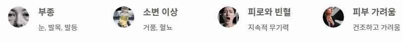 - 극심한 피로감과 빈혈: 신장에서 생성되는 조혈 호르몬이 줄어들어 빈혈이 생기는 것 또한 신장이 안좋으면 나타나는 증상입니다.