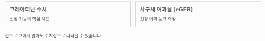 신장이 안좋으면 나타나는 증상이 겉으로 보이지 않더라도 수치상으로는 나타날 수 있습니다. 크레아티닌 수치와 사구체 여과율(eGFR)을 확인하는 것이 신장이 안좋으면 나타나는 증상 확진의 핵심입니다.