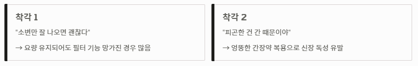 많은 분이 "소변만 잘 나오면 괜찮다"고 생각하지만, 요량이 유지되더라도 필터 기능이 망가진 경우가 많습니다. 또한, 신장이 안좋으면 나타나는 증상을 단순히 피곤해서 생기는 간 문제로 오해하여 엉뚱한 간장약을 복용하다가 신장 독성을 유발하기도 합니다. 신장이 안좋으면 나타나는 증상은 반드시 소변 검사와 전문의 진단을 통해 확인해야 함을 명심하세요.
