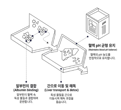 - 3단계: 해독 작용 및 산성도 유지: 혈액 속 독성 물질을 결합하여 간으로 이동시키고, 혈액의 pH 수치를 일정하게 유지합니다. 체내 환경을 쾌적하게 관리하는 것 역시 놓칠 수 없는 알부민의 효능입니다.