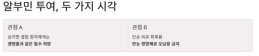 3. 알부민 보충을 바라보는 두 가지 전문적 관점