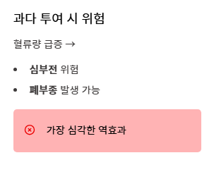 - 무분별한 주사 투여는 심장 질환 등의 부작용을 초래할 수 있습니다.