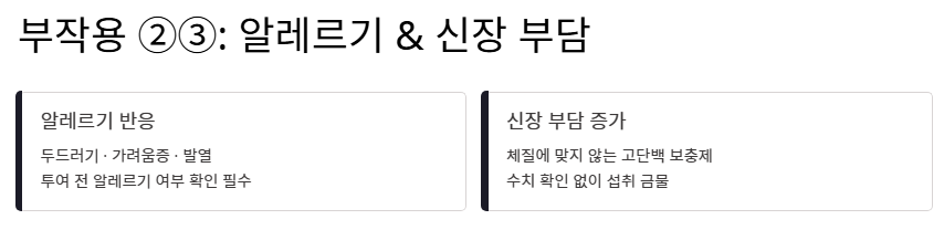 - 신장 부담 증가: 체질에 맞지 않는 고단백 보충제는 오히려 신장에 무리를 줄 수 있으므로 수치 확인 없이 알부민의 효능만을 쫓는 것은 금물입니다.